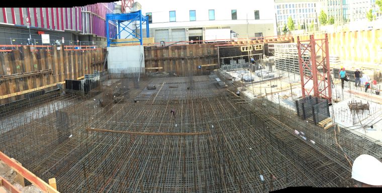 Ein besonderes Highlight ist die Kellerwand mit einer höhe von 8 Metern und Länge von 140 Metern. Aufgrund des hohen Termindrucks und der speziellen logistischen Anforderungen haben wir uns gemeinsam mit der ARGE entschieden, die Bewehrung dieser Wände und Decken mit Rollmatten der Firma BAMTEC, hergestellt durch die Betonstahlbiegerei Lotter, auszuführen.
